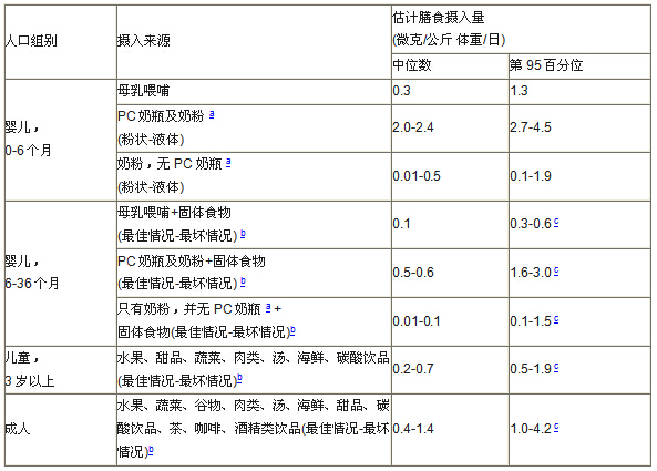 表1. 雙酚 A的估計(jì)攝入量