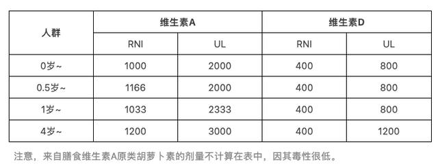 所以,適當(dāng)補充維生素A也是可以的。我國對維生素A的推薦攝入量(RNI)和最大耐受量(UL)也都做出了評估,只要在這個量之間,都認(rèn)為是安全的。