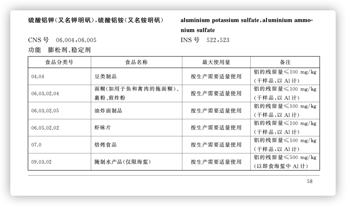 上圖可見(jiàn),《食品安全國(guó)家標(biāo)準(zhǔn) 食品添加劑使用標(biāo)準(zhǔn)》(GB 2760-2014),未批準(zhǔn)在嬰幼兒輔食中添加硫酸鋁鉀(明礬),連普通面條都未批準(zhǔn)。歐盟標(biāo)準(zhǔn)中也不允許在嬰幼兒食品中添加硫酸鋁鉀。所以市場(chǎng)上的正規(guī)嬰幼兒輔食,是不會(huì)額外添加明礬的。