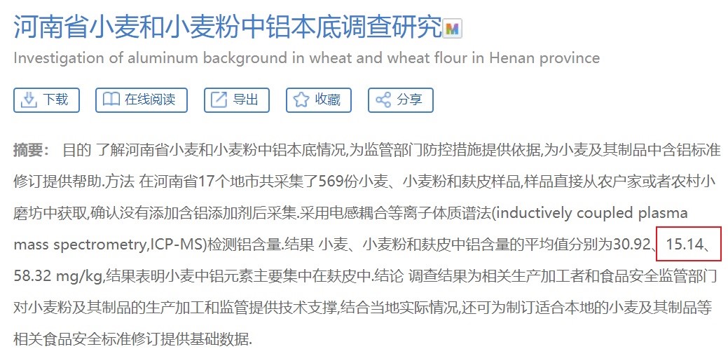 鋁是地殼中含量最高的金屬元素,因此天然的存在于環(huán)境、水和各類(lèi)食物中,嬰幼兒輔食中用到的小麥粉、蔬菜粉等也不例外。一些科學(xué)研究對(duì)小麥及小麥粉中本底的鋁含量進(jìn)行過(guò)測(cè)定,比如下圖的研究。所以嬰幼兒輔食中的鋁顯然是天然本底,而不是生產(chǎn)過(guò)程中額外添加。