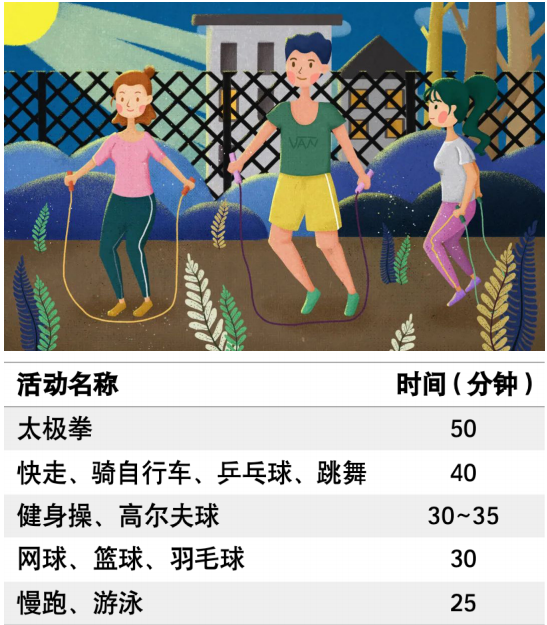 當(dāng)然,我們?cè)趯?shí)踐中也可以用其他活動(dòng)項(xiàng)目來(lái)代替快走,活動(dòng)量與 6000 步快走相對(duì)應(yīng)即可。