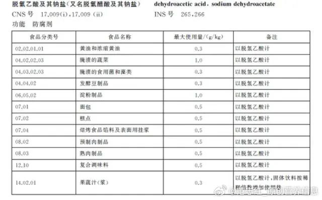 圖:目前許可使用脫氫乙酸鈉的食物類別,大家對照檢查一下自己的食物中是否經(jīng)常有這些類別,并查看食品配料表。