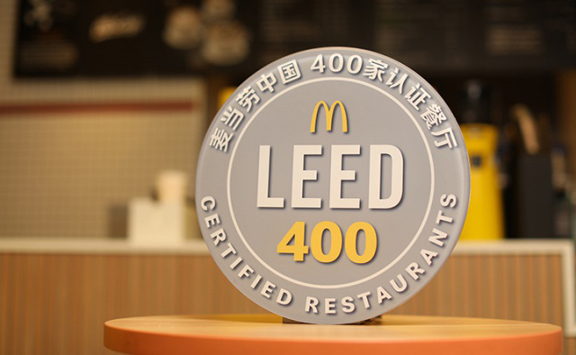 2020 年 9 月 16 日,麥當勞成都繞城大道南一段餐廳獲頒 LEED(能源與環(huán)境設計先鋒)認證, 成為麥當勞中國第 400 家獲得 LEED 認證的綠色餐廳。這 400 家餐廳一年的節(jié)水節(jié)電總量,相當于減少二氧化碳排放近一萬噸。麥當勞中國目前也是中國市場擁有最多數(shù)量 LEED 認證門店的品牌。